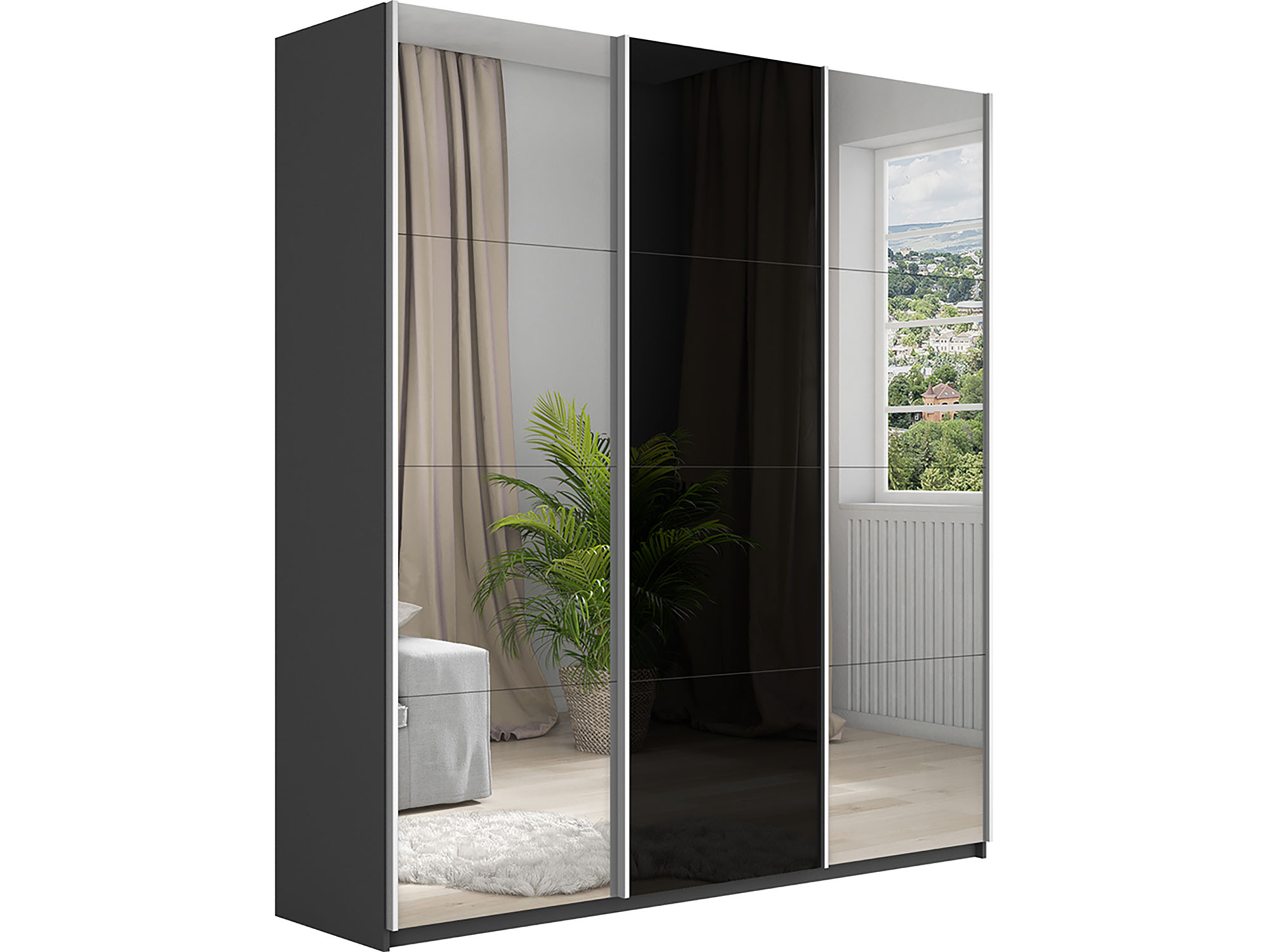 Шкаф-купе Прайм 3-х дверный 1800 Зеркало/Стекло Черное/Зеркало Серый Диамант