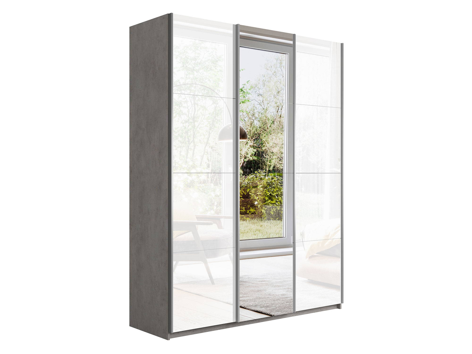 - Шкаф-купе Прайм 3-х дверный 2100 два Стекла Белые/Зеркало Бетон