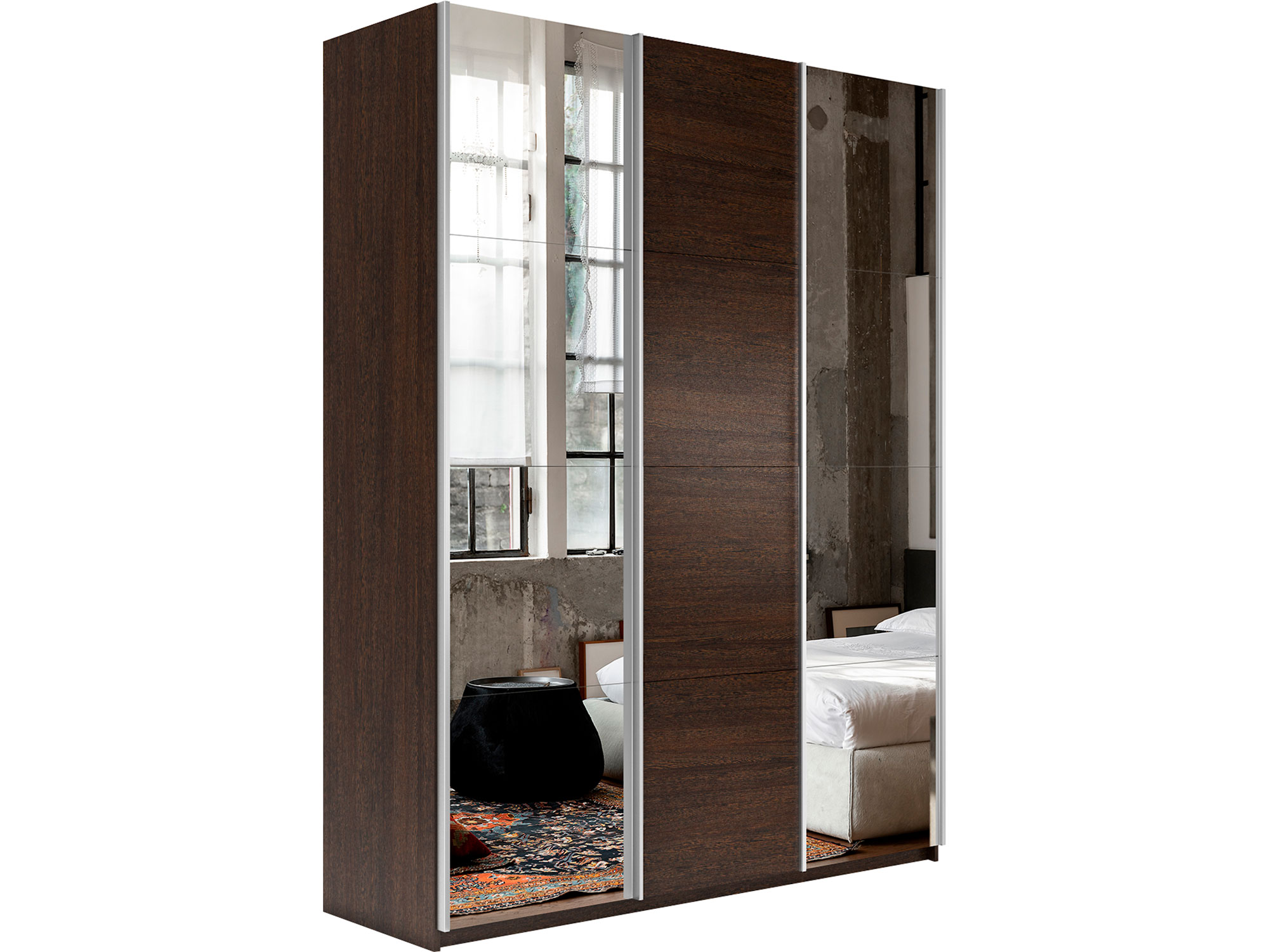 - Шкаф-купе Прайм 3-х дверный 2100 два Зеркала/ДСП Венге
