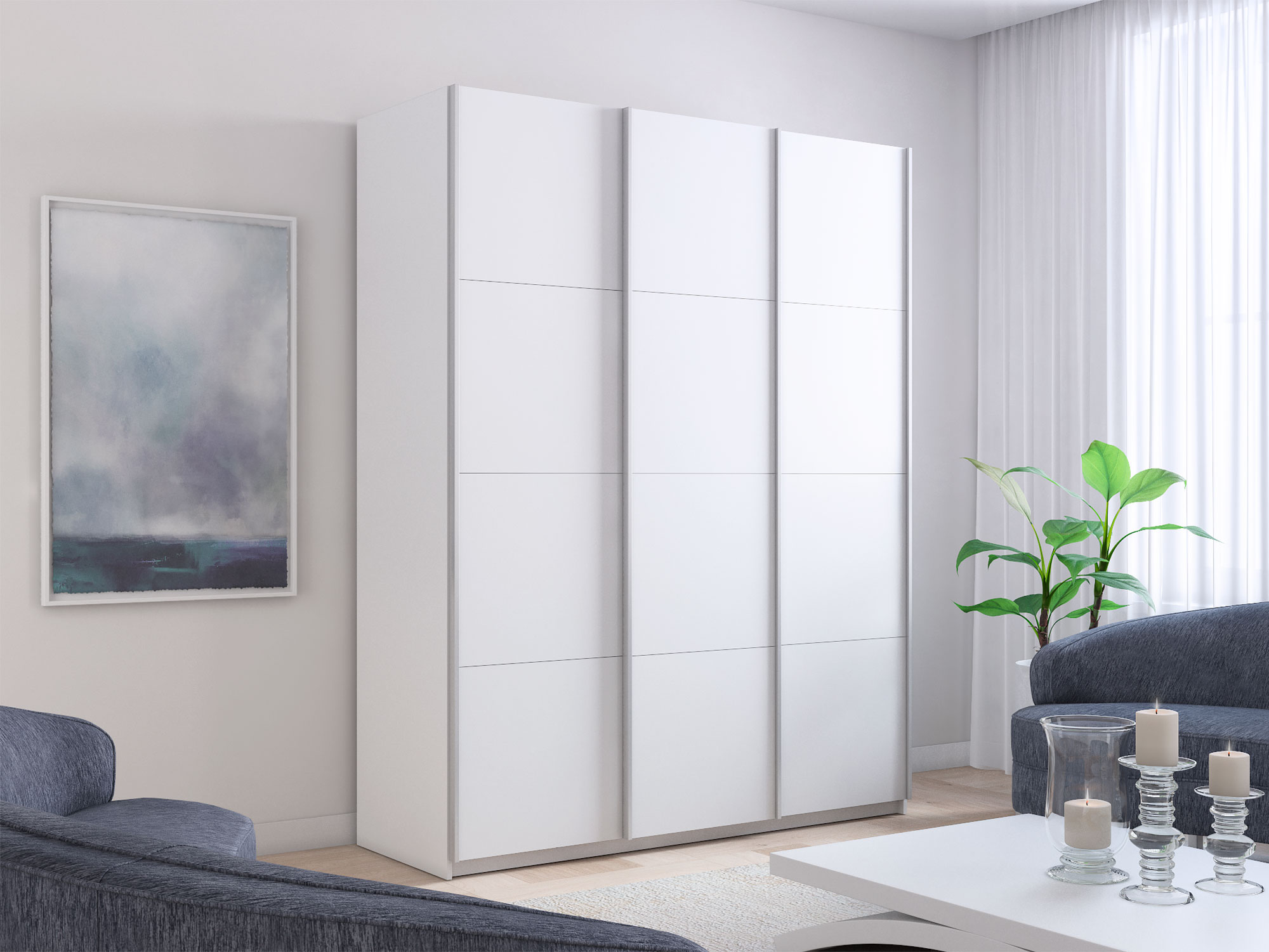 - Шкаф-купе Прайм 3-х дверный 2100 три ДСП Белый Снег