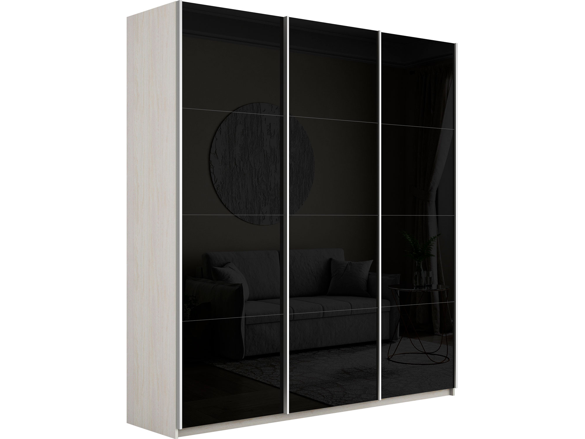 Шкаф-купе Прайм 3-х дверный 2100 три стекла черные Ясень Анкор Светлый