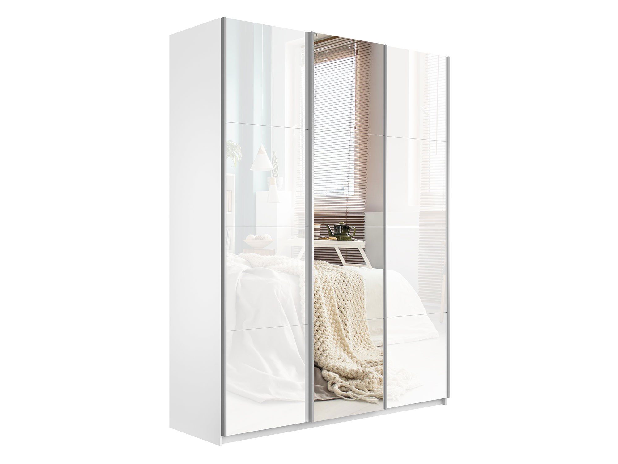 - Шкаф-купе Прайм Широкий 3-х дверный два белых стекла/зеркало Белый Снег