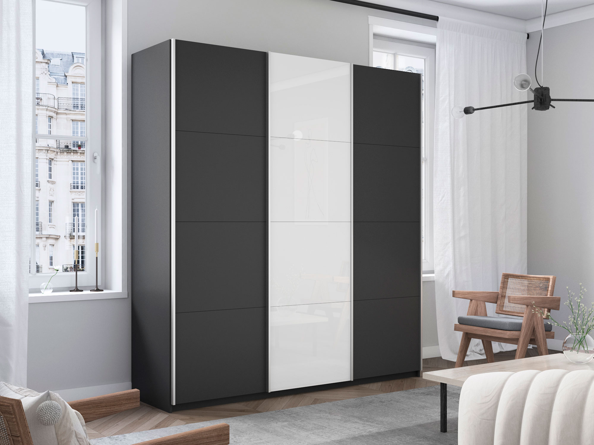 - Шкаф-купе Прайм Широкий 3-х дверный два ДСП/Стекло Белое Серый Диамант