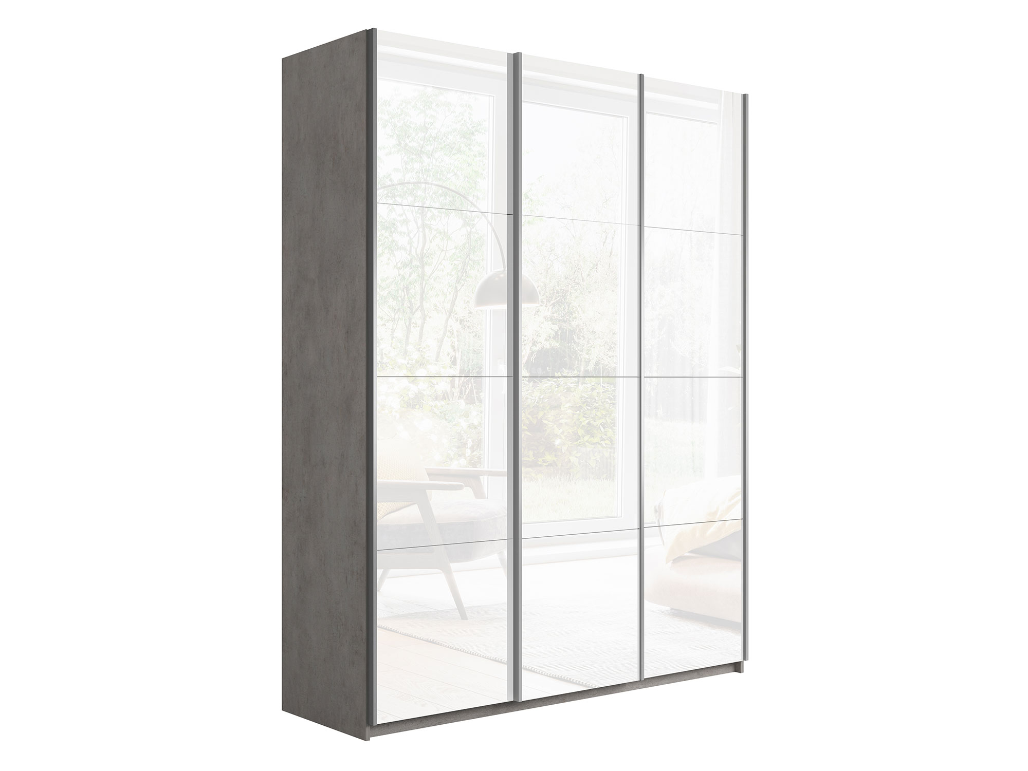 - Шкаф-купе Прайм Широкий 3-х дверный три белых стекла Бетон