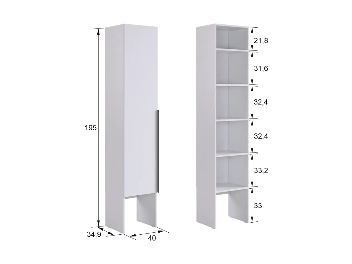 - Шкаф однодверный L400 Баско белое дерево