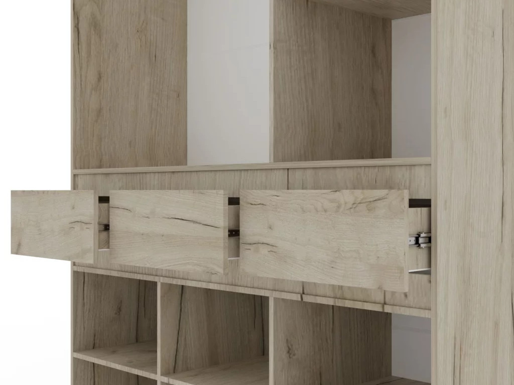 - Шкаф распашной трехстворчатый Атлант Дуб крафт серый/Кашемир