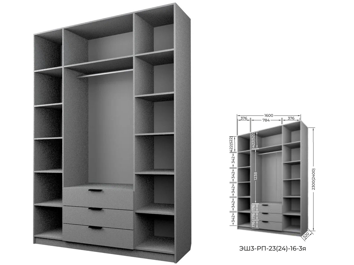 Комплект: ЭШ3-РП-24-16-3я, Шкаф с 3 ящиками + два ЗС-24-3я,Зеркало для шкафов ЭШ 2400 мм
