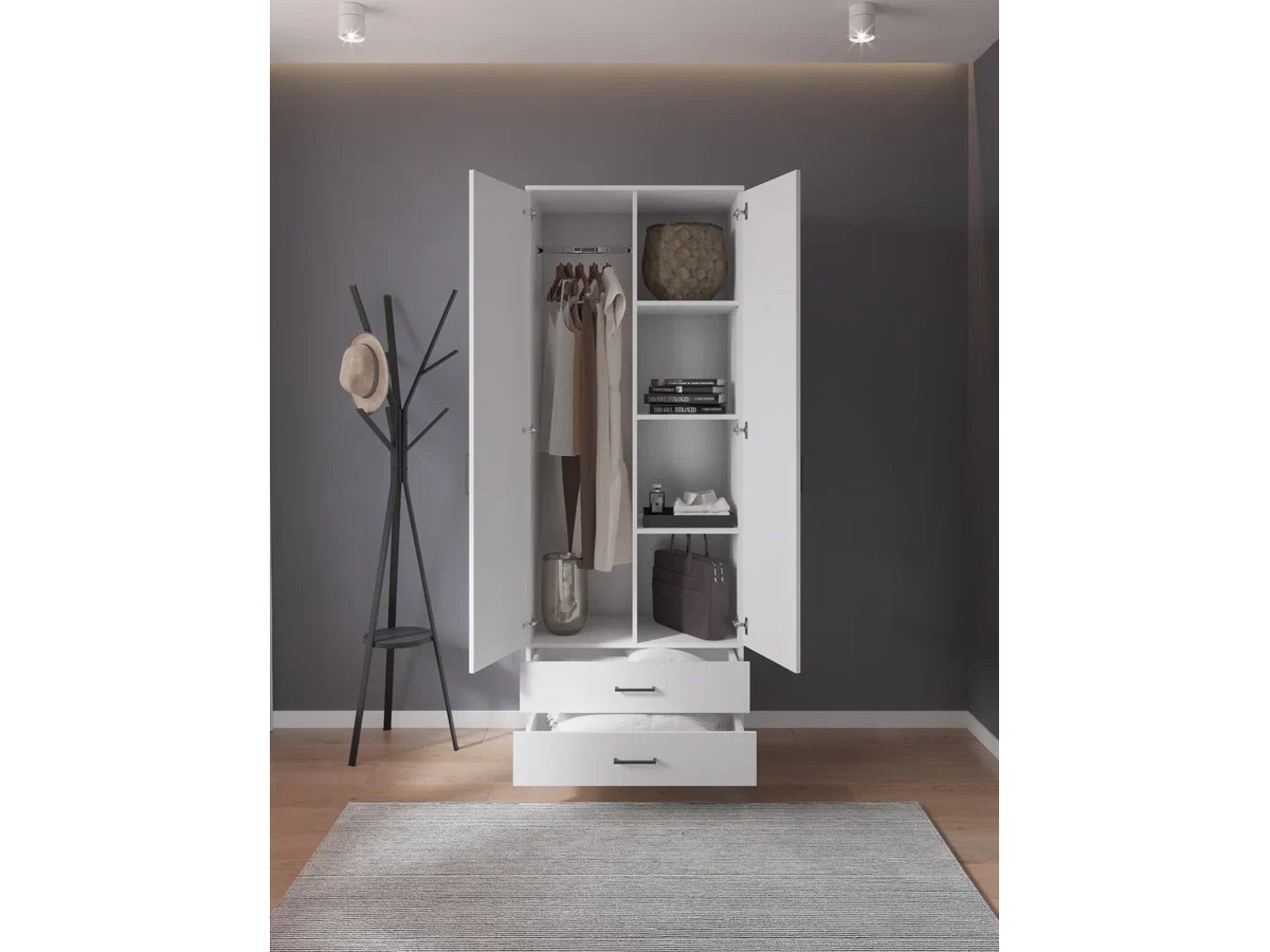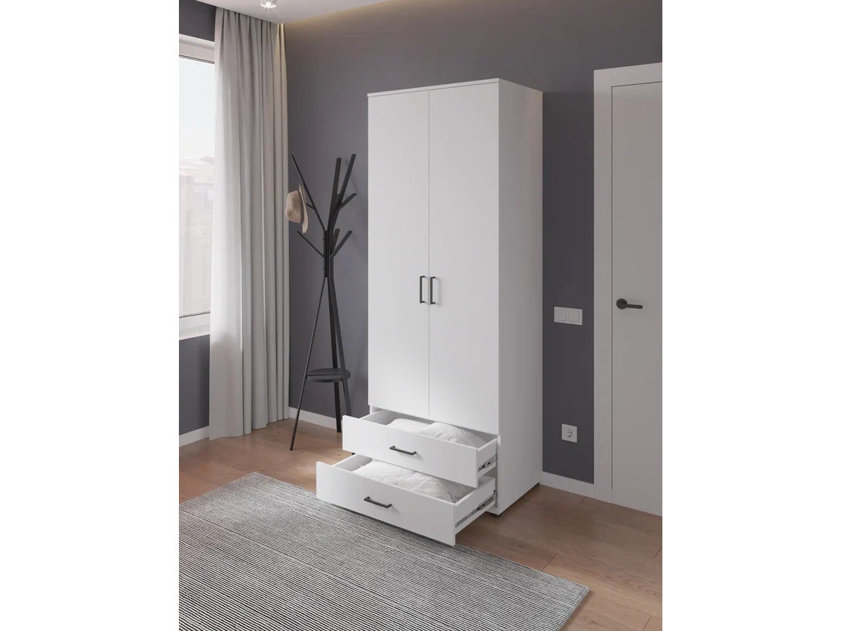 Шкаф с ящиками, штангой и полками арт. 556 белый