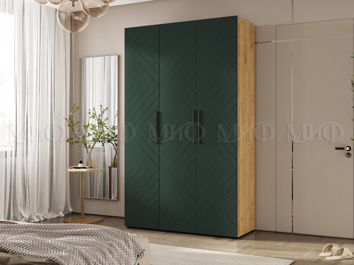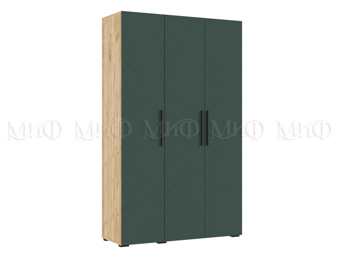 Шкаф трехстворчатый (1350) Флэш Браш Мени Грин, Дуб Крафт