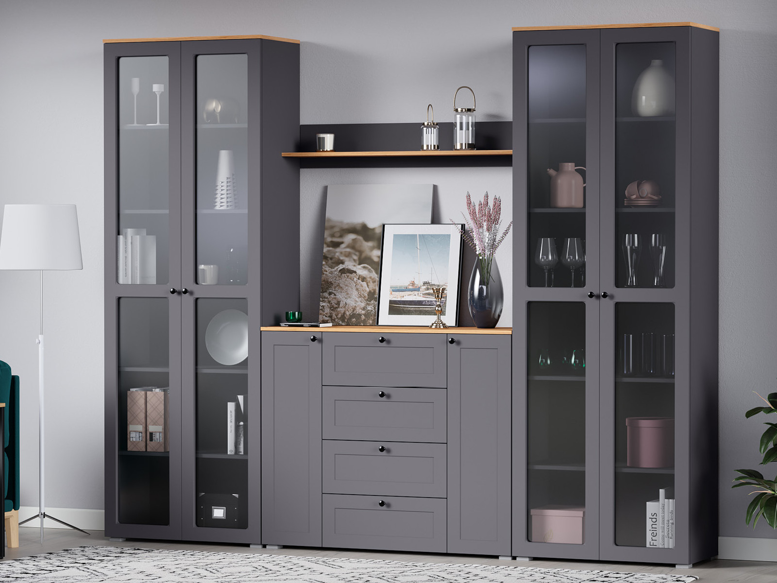 - Шкаф-витрина 16.394.02 Остин Серый Графит
