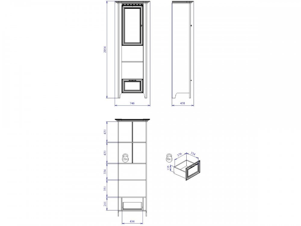 Размер ШхГхВ: 746*458*2054 мм