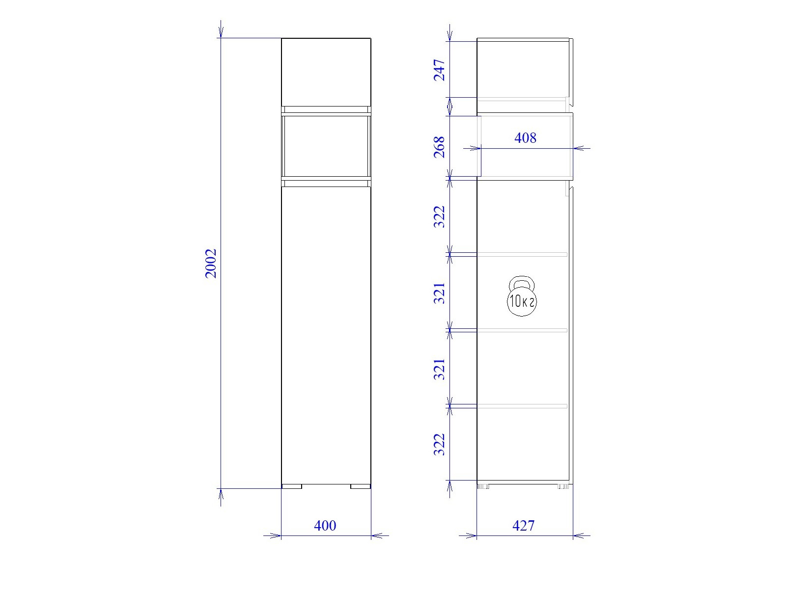 Размер ШхГхВ: 400*427*2002 мм