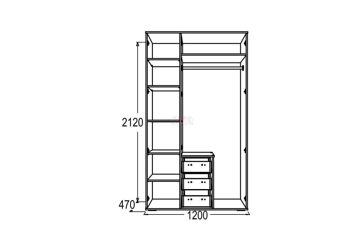 Размер (ВхШхГ): 2120х1200х470 мм