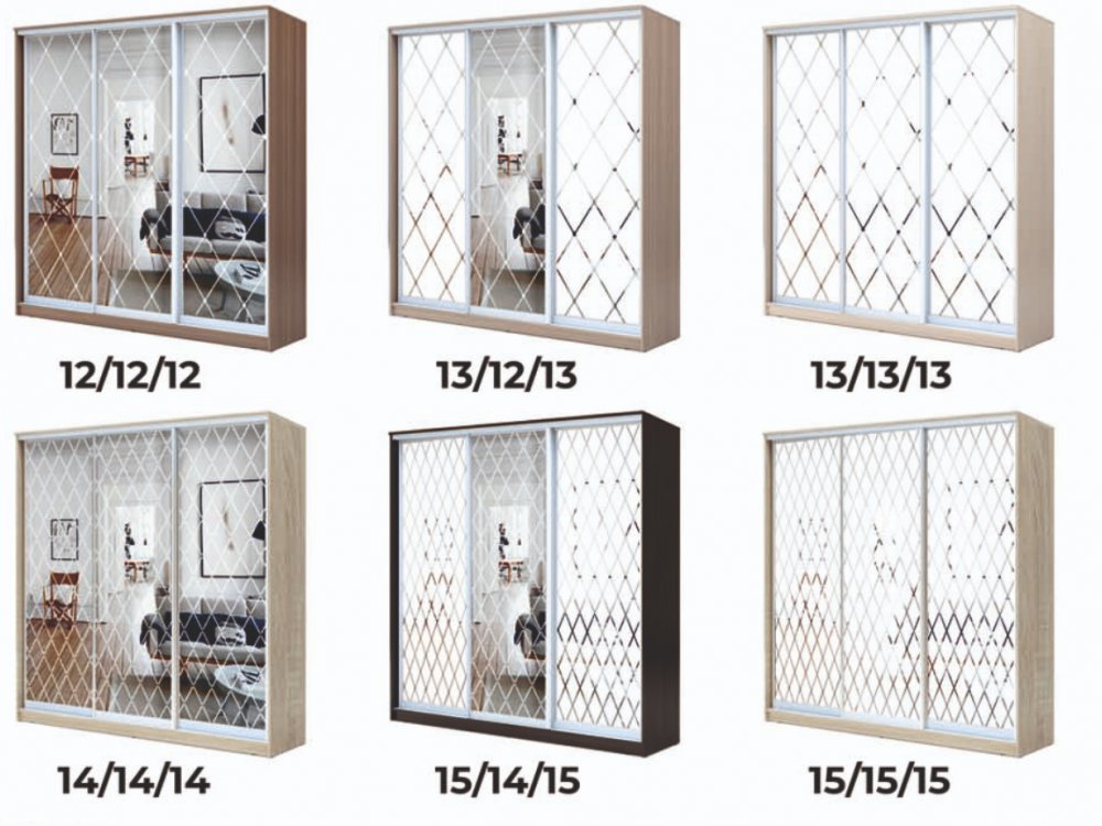 - 3 двери Зеркало с пескоструйной обработкой