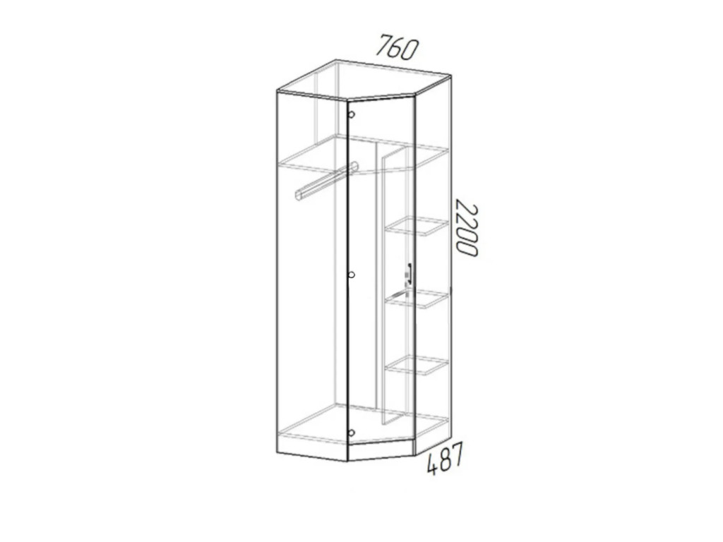 Размер: 760/760(Ш) Х 2200(В) Х 487(Г) мм