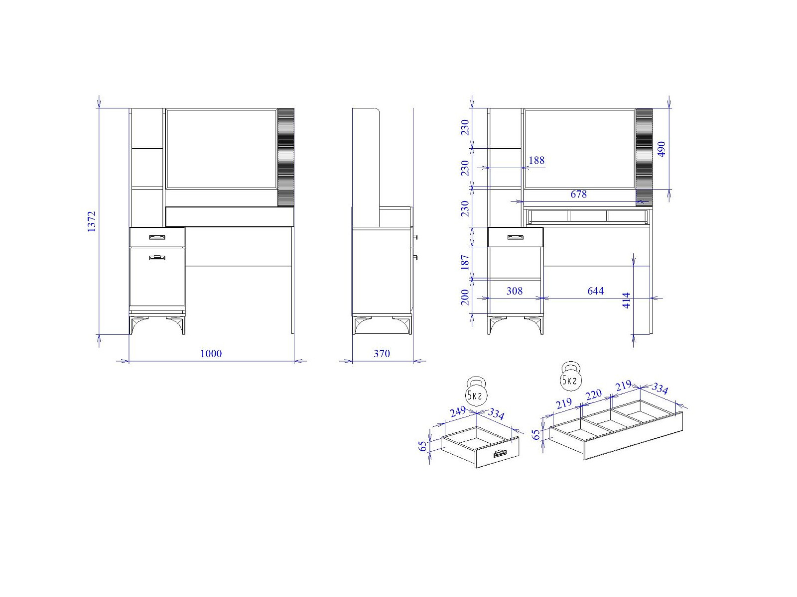 Размер ШхГхВ: 1000*373*1372 мм